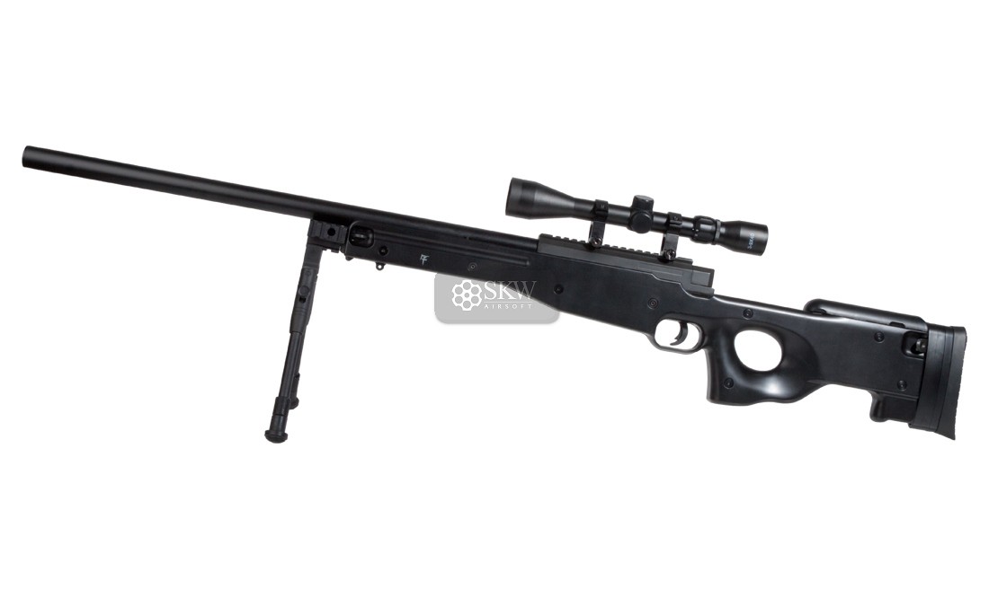 Saigo Defense L96 muelle negro, rifle de cerrojo de alto rendimiento. Precisión y potencia excepcionales para tiros a larga distancia.