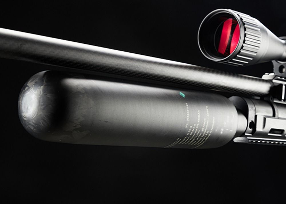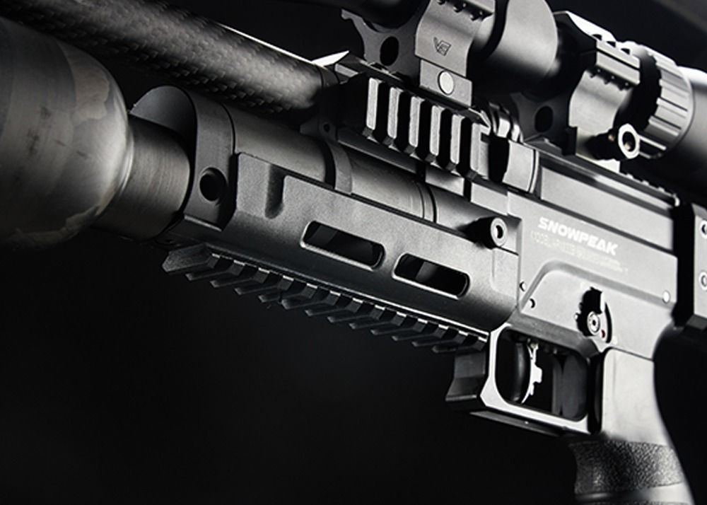 El depósito de aire es una botella de fibra de carbono (CFB) y corre paralela al cañón. Gracias al depósito de fibra de carbono, la capacidad de llenado se incrementa drásticamente a 500 cc en comparación con el Snowpeak AP1000 Mercury (250 cc), manteniendo un peso bajo. Un guardamanos sintético está situado justo detrás del cilindro de aire, con ranuras M-LOK en los laterales y un raíl de montaje Weaver/Picatinny en la parte inferior. El raíl de montaje y las ranuras M-LOK permiten montar un bípode u otros accesorios en el cañón.