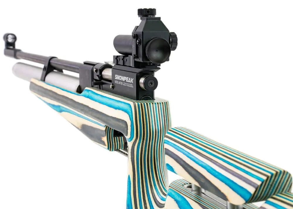 El Snowpeak MAT300 es un rifle de aire comprimido básico a un precio razonable. Su bajo peso y su multitud de opciones de ajuste hacen que este rifle sea adecuado también para tiradores más jóvenes. La culata es universal y la palanca de amartillado se puede invertir para que el rifle sea utilizable por tiradores diestros y zurdos. El regulador se encarga de que los disparos sucesivos emitan la misma cantidad de energía, siempre que la presión del aire sea la adecuada.
