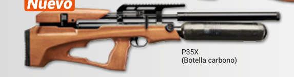 Carabina PCP Snowpeak P35X calibre 5,5 con botella de carbono: máxima autonomía, ligereza y gran precisión para tiro deportivo.
