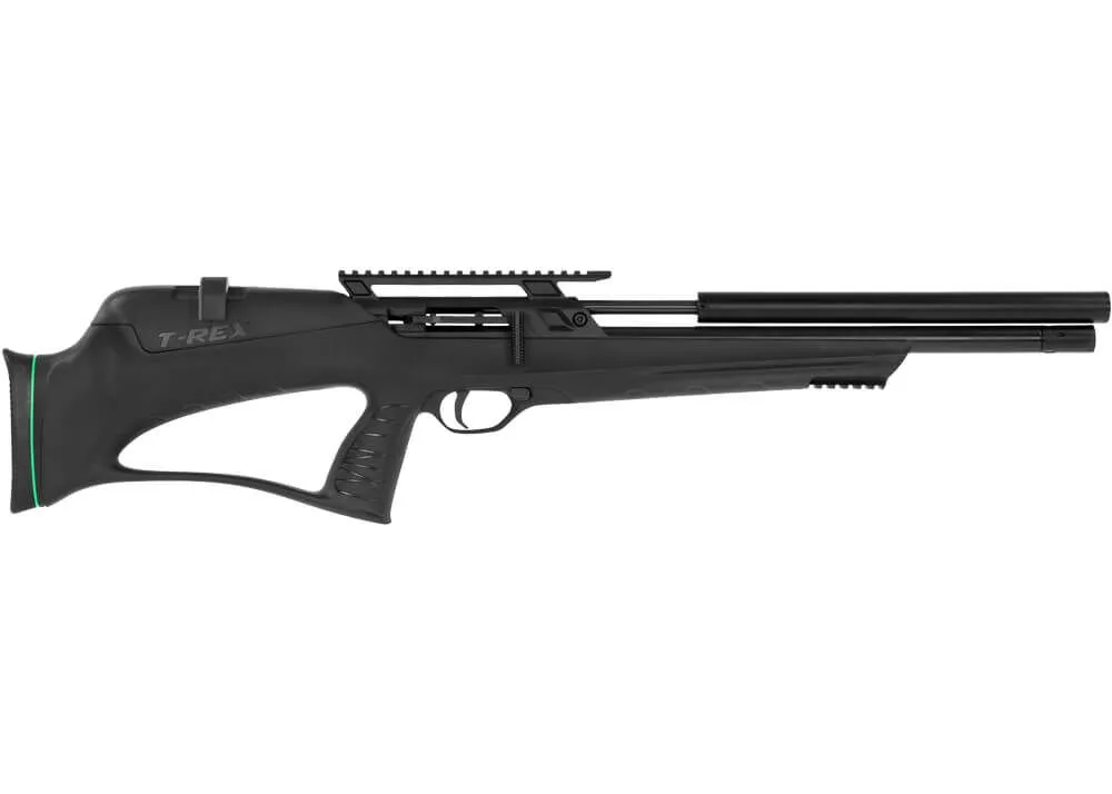 El Snowpeak T-Rex Bullpup es un rifle de aire comprimido PCP regulado con una culata hecha de material sintético de bajo mantenimiento. Esta culata viene con una almohadilla para la mejilla ajustable verticalmente y una almohadilla de retroceso de goma que hace que el hombro sea más cómodo y absorbe parcialmente el retroceso. El cilindro de aire con una presión de trabajo de 250 bar ofrece 120 cc de aire a presión.
