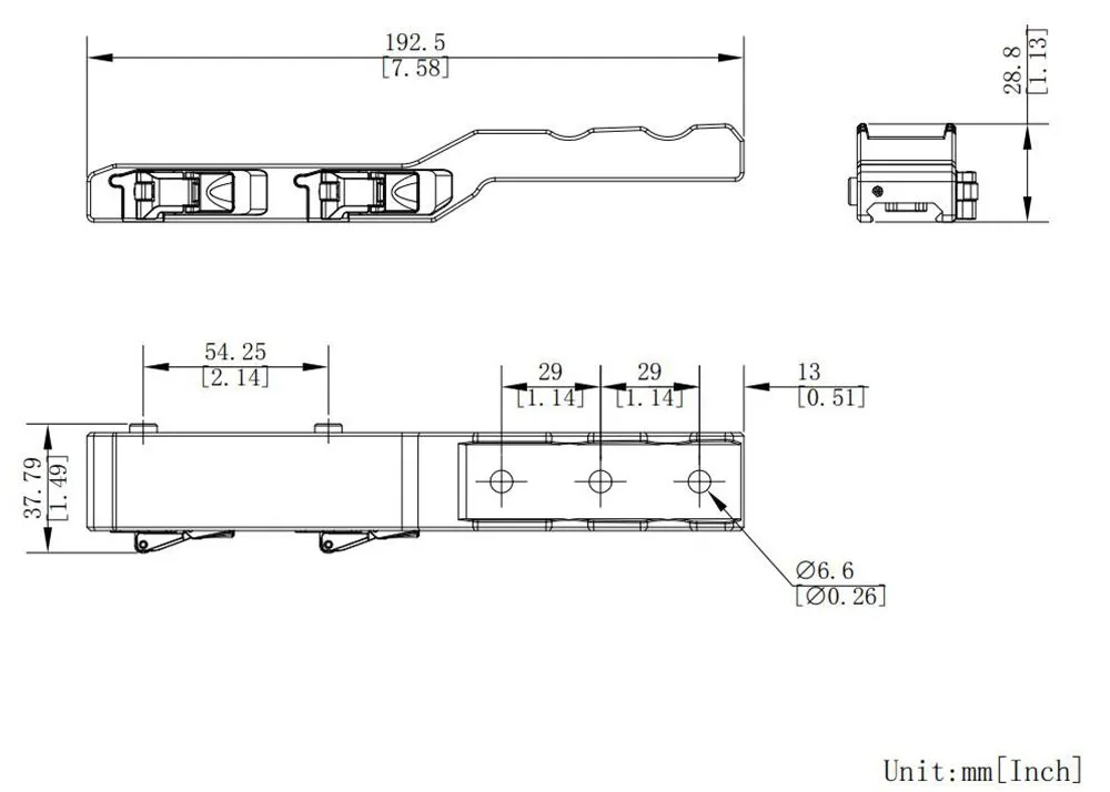 HikMicro fabricó el Weaver/Picatinny QR para Thunder/Panther/Cheetah en aluminio para mantener el peso limitado a 210 gramos. La longitud total del soporte es de 192 mm.