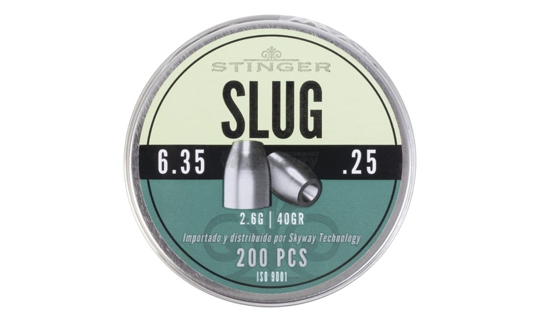 STINGER SLUG 6.35 mm, 200 uds. Perfectos para caza mayor y tiro de precisión, proporcionan un alto poder de penetración y una excelente estabilidad en el vuelo. Fabricados en plomo, garantizan un impacto contundente.