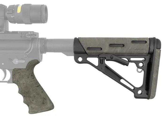 Esta culata Hogue AR15 OMCB Mil-Spec con empuñadura en Ghilly Green consta de dos partes: