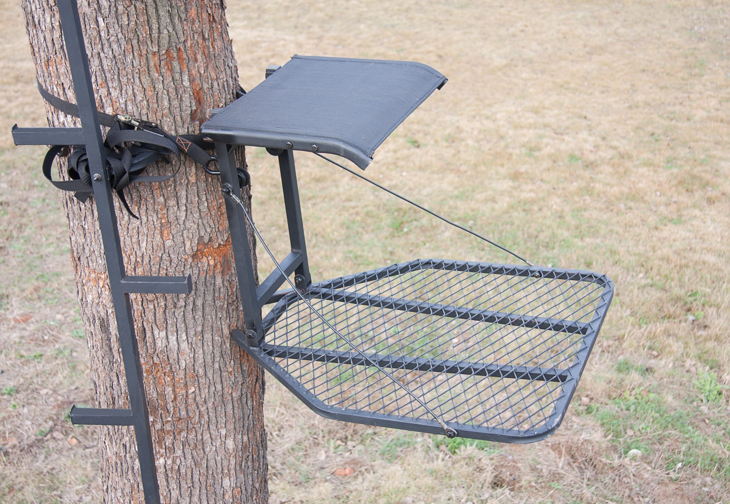 Nuestro treestand tipo summit ofrece todos los beneficios de un treestand autoescalante a un precio más bajo. Tiene el mismo sistema de retención de cable y marco perimetral completo. Y está diseñado para completamente silencioso .