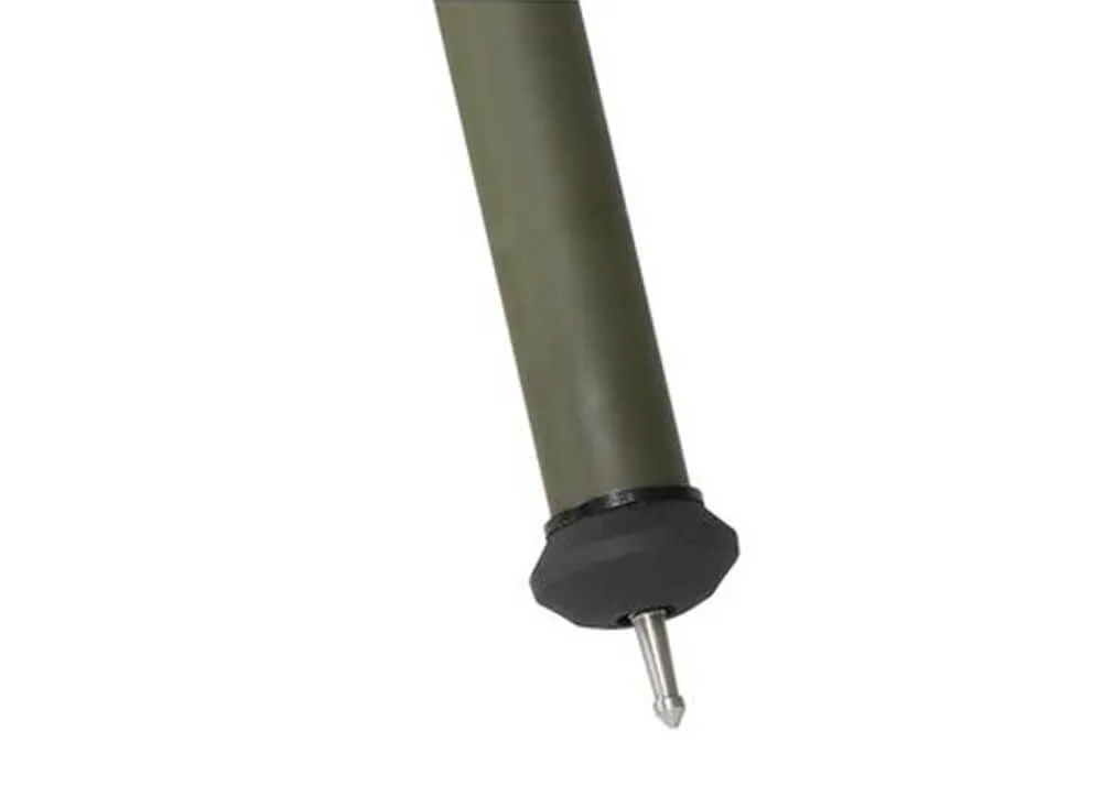 También en términos de elevación, el trípode BOG Deathgrip Infinite Aluminium se puede ajustar fácilmente, porque las patas de aluminio tienen un sistema de bloqueo por giro. Simplemente girar las patas te permitirá extenderlas o retraerlas, lo que significa que podrás encontrar la altura perfecta para disparar cómodamente. Hay piezas de goma en las puntas de las patas para mayor agarre si el trípode se coloca sobre una superficie dura. Incluso puede montar pasadores de metal en las puntas de goma, que se pueden usar para colocar aún más sólidamente el trípode BOG Deathgrip Infinite Aluminium sobre una superficie blanda.