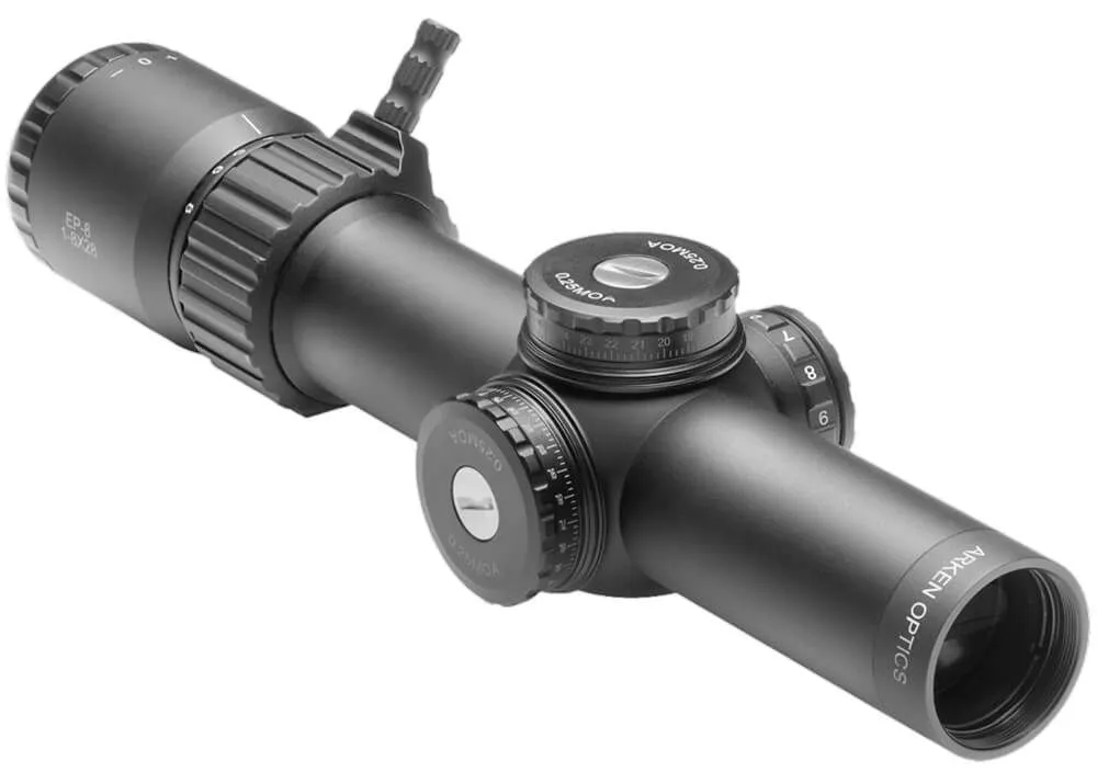 La mira telescópica del rifle tiene torretas, que se pueden usar para ajustar la elevación y el viento de la retícula. Esas torretas tienen un rango de ajuste de 110 MOA y tienen un ajuste de 1/4 MOA por clic. El objetivo de este visor Arken EP8 1-8×28 BDC KLBOX tiene un diámetro de 28 mm, lo que proporciona una transmisión de luz decente. La mira telescópica tiene una carcasa duradera con un diámetro de tubo de 34 mm y una longitud total de 262 mm. Pesa 585 gramos, por lo que no pesará demasiado el rifle.