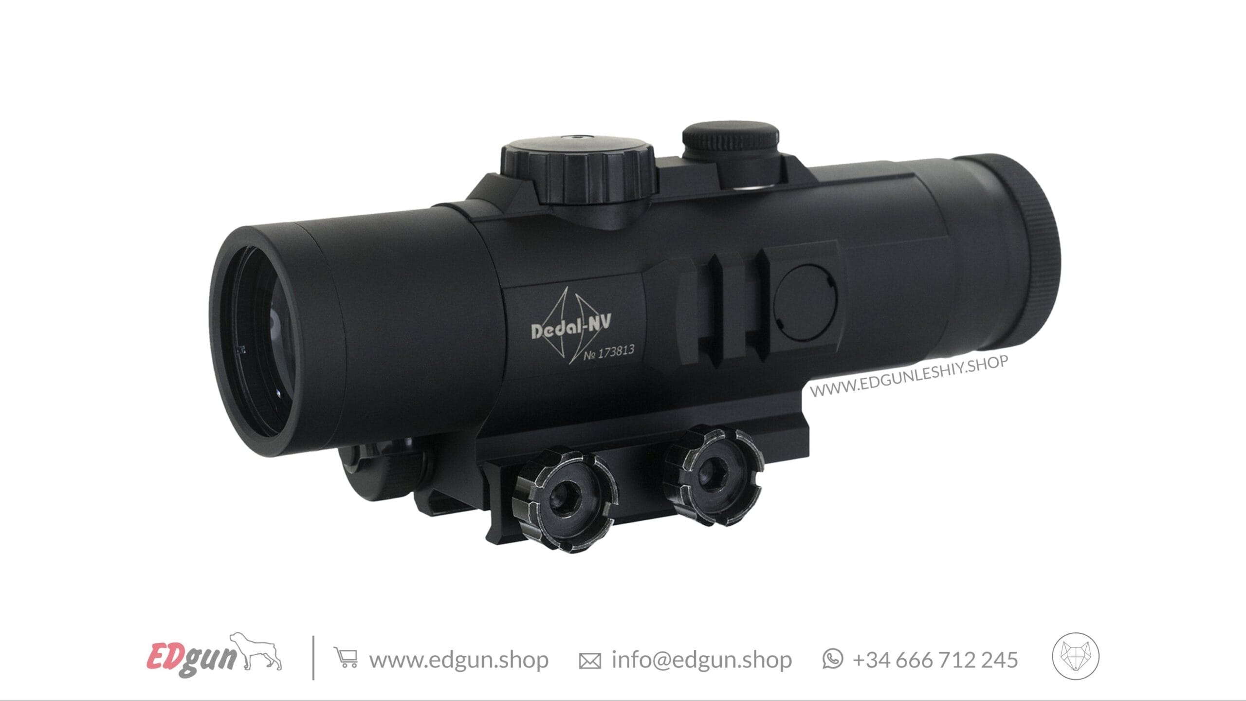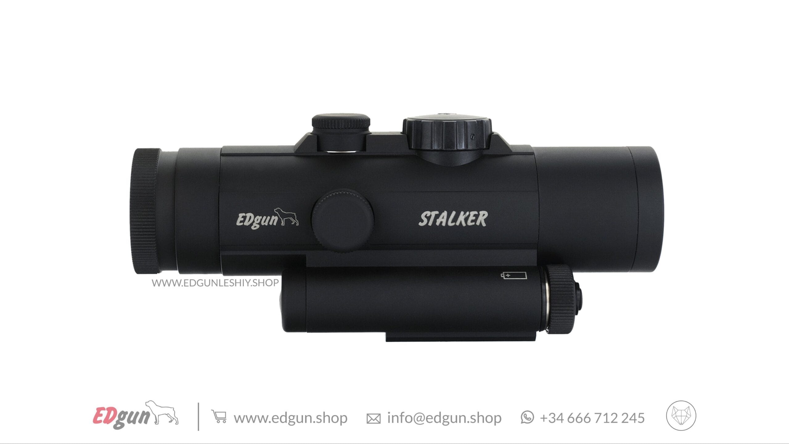 Visor EDgun Dedal Stalker. EDgun Ltd en cooperación con Dedal-NV desarrolló una mira prismática ideal para la adquisición rápida de objetivos para uso en el campo serio. Esta mira se basa en la mira prismática DK9 probada en batalla que a menudo se encuentra en el AK-Alpha. EDgun ayudó a diseñar una retícula que sería útil no solo en un rifle de aire comprimido sino en cualquier rifle de fuego central o donde el tirador esté buscando una mira compacta, liviana y con paralaje tolerante.