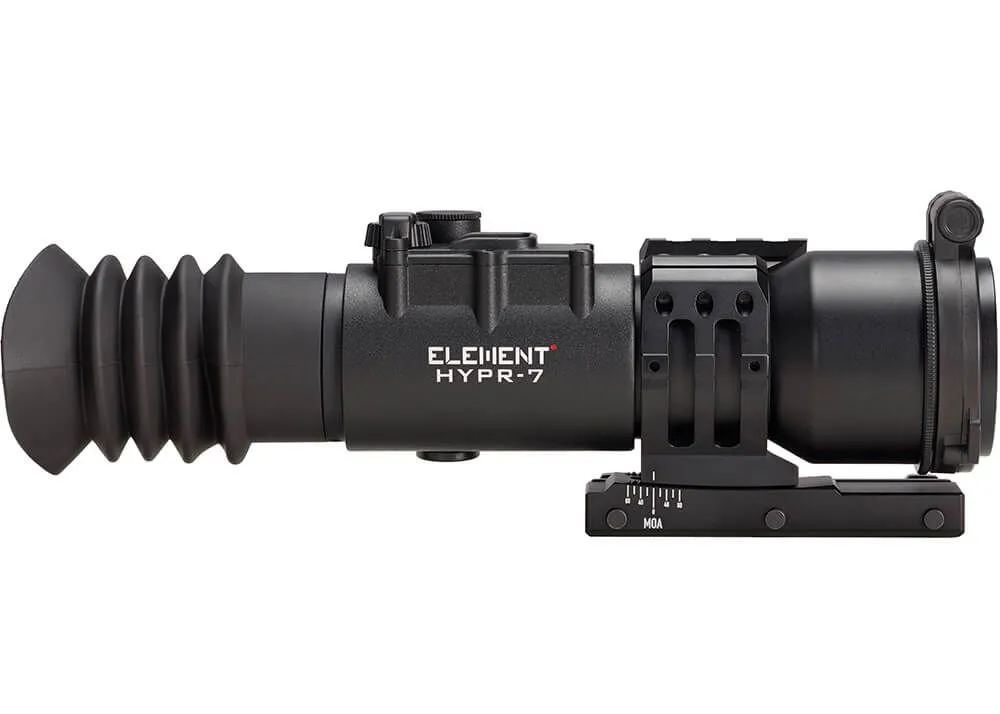 El visor de rifle Element Optics HYPR-7 7×50 viene con una montura única que se puede montar fácilmente en un riel de visor Weaver/Picatinny. Esa montura única tiene una ligera curva y el visor del rifle se puede montar libremente en esa curva. Esto significa que el visor también es adecuado para disparar a larga distancia. La montura tiene marcas en MOA.