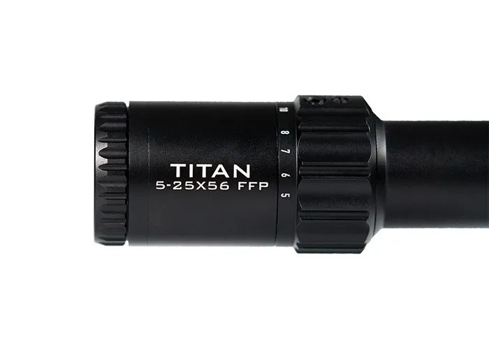 El cristal ED transparente de las lentes totalmente multicapa proporciona, en combinación con un gran objetivo de 56 mm, una imagen brillante y la retícula iluminada se coloca en el primer plano focal, lo que significa que mejora al acercar el zoom, haciendo que las subtensiones de la retícula sean verdaderas en todos los aumentos. Con un rango de aumento de 5x a 25, el visor Element Optics Titan 5-25×56 FFP es muy adecuado para su uso en distancias medias y largas. El zoom es fácil gracias a la palanca de tiro que se puede desenroscar fácilmente y reemplazar con el tornillo hexagonal incluido si se prefiere.