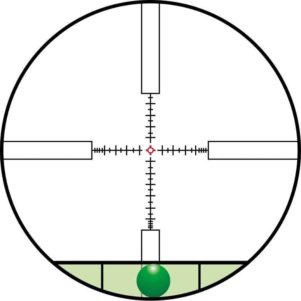 - Retícula iluminada: Punto central iluminado. 5 intensidades en azul y rojo