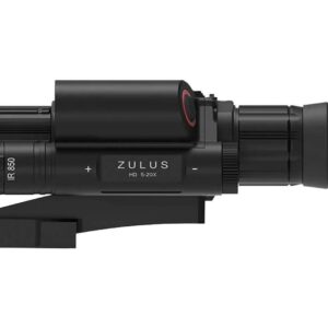El visor nocturno DNT Zulus HD 5-20x LRF tiene un aumento mínimo de 5x y un aumento máximo (digital) de 20x, lo que le permite acercarse a lo que sea que esté observando. Todo se presenta de forma nítida y con extremo detalle en la pantalla Micro-OLED de 1920x1080p que tiene una frecuencia de actualización de 60 Hz, lo que da como resultado una imagen fluida. La mira telescópica de visión nocturna se puede montar fácilmente en un riel de mira telescópica Weaver/Picatinny y cuenta con una retícula, por lo que puede usarla para apuntar con precisión. Puedes elegir entre cinco colores -negro, blanco, verde, amarillo, rojo- para la retícula. La mira telescópica nocturna tiene un modelo compacto y pesa solo 584 gramos, por lo que apenas pesará sobre tu rifle. Tiene una distancia ocular de 45 mm.