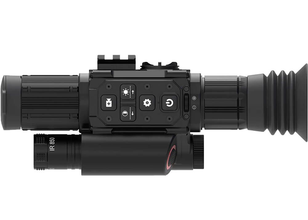 Este visor nocturno DNT Zulus HD 5-20x LRF le permite observar correctamente en todo momento, independientemente de las circunstancias de iluminación. Esto se debe a que cuenta con un potente sensor CMOS Sony Starvis 2 con una resolución de 1920x1080p, que proporciona imágenes con una claridad y brillo excelentes. El cristal ED (Extra-low Dispersion) garantiza una gran transmisión de luz y evita la aberración cromática. Este iluminador IR de 850 Nm contribuye a la visibilidad durante la observación nocturna y tiene un alcance de 400 metros. Puede desconectar fácilmente el iluminador de 850 Nm y sustituirlo por un iluminador IR de 940 Nm que está disponible por separado.