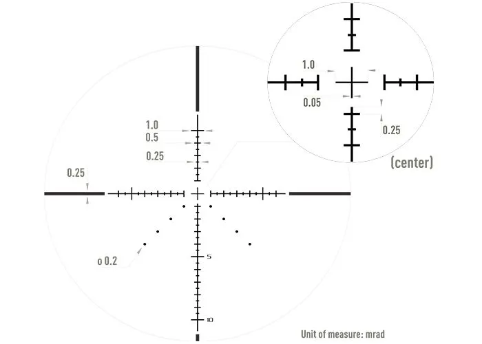 La retícula MH10 está diseñada para mostrar marcas MRAD (MIL) reales con un aumento de 10x, lo que la hace perfecta para calcular distancias. Por supuesto, esto también se puede hacer con otras ampliaciones añadiendo otra multiplicación o división al cálculo.