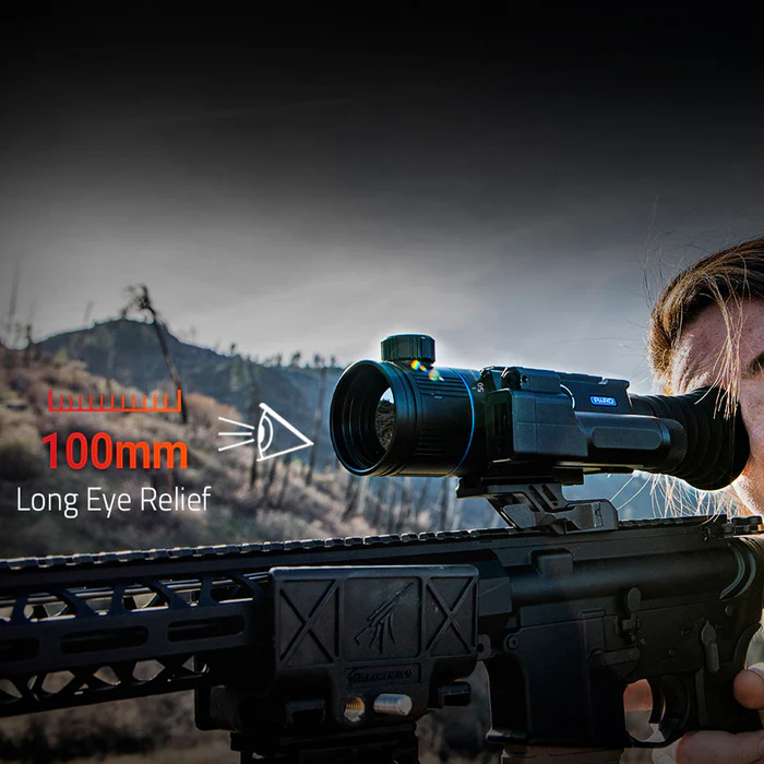 Diseñado con un relieve ocular de 100 mm de largo, lo que garantiza una experiencia de caza más segura y adaptarse a los hábitos de caza de los usuarios de óptica tradicionales.