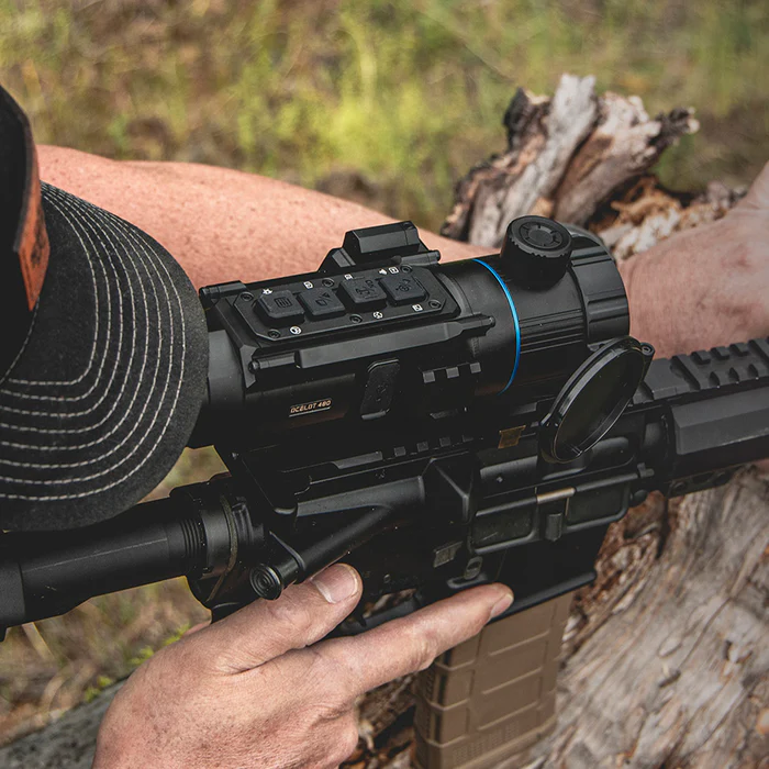 Ocelot Zoom: Un dispositivo de doble vista que te permite cambiar sin esfuerzo entre 25 mm y 50 mm de campo de visión para distancias largas y cortas necesidades de caza. solo gira la perilla para ajustar sin problemas el campo de visión.