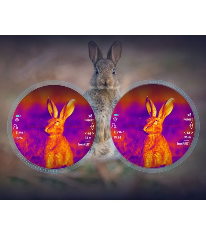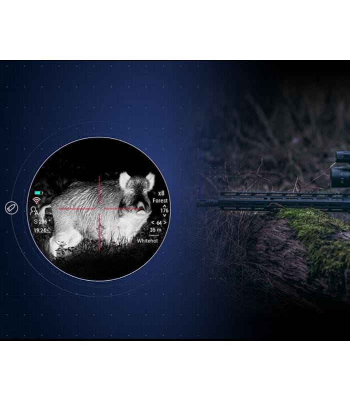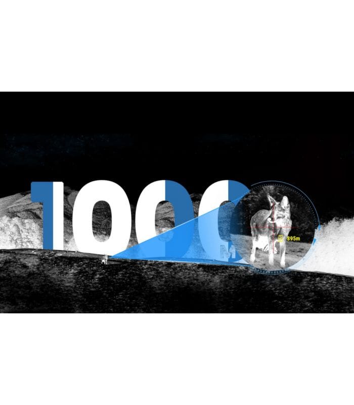 Los objetivos se pueden detectar hasta a 1000 m de distancia. El módulo de rango compacto recientemente desarrollado es preciso y tiene una velocidad de detección rápida. Cuando se combina con la balística integrada, el LRF le brinda la información de rango que necesita por la noche para cazar de manera más inteligente.