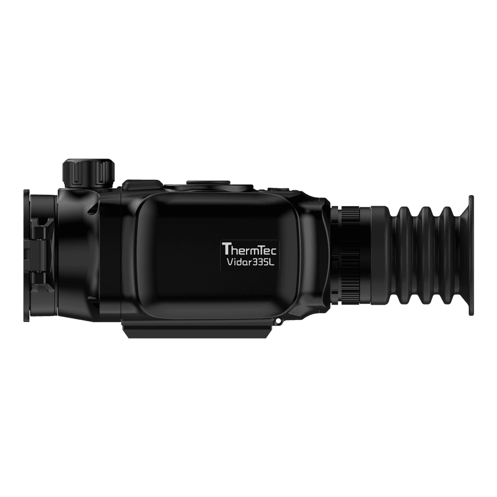 - ThermTec Vidar 335L LRF : compacto pero potente, con grabación de vídeo, capacidad para tomar instantáneas y un chip de memoria integrado de 64 GB. Cuenta con una resolución térmica de 384 x 288, NETD <25 mK y detección automática de objetos. También ofrece medición de distancias con alcance láser de hasta 1200 m, funciones de imagen en imagen y RAV, zoom digital continuo de 1x a 5x y una variedad de funciones de punto de mira y pseudocolores. Muestra una resolución de 1024 x 768 en una pantalla OLED de 0,39 pulgadas, con una batería de litio que dura hasta 14 horas.