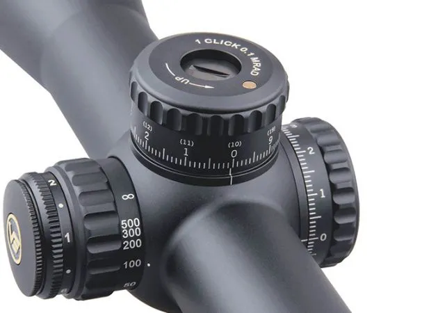 Su retícula táctica MIL VCT-34FFP se puede ajustar con clics de 0,1 MRAD, con un rango de ajuste total de 26 MRAD para elevación y 16 MRAD para resistencia al viento. La torreta de elevación cuenta con un tope cero y ambas torretas se pueden bloquear para evitar ajustes involuntarios.