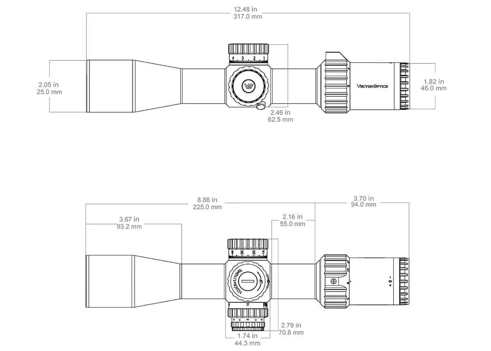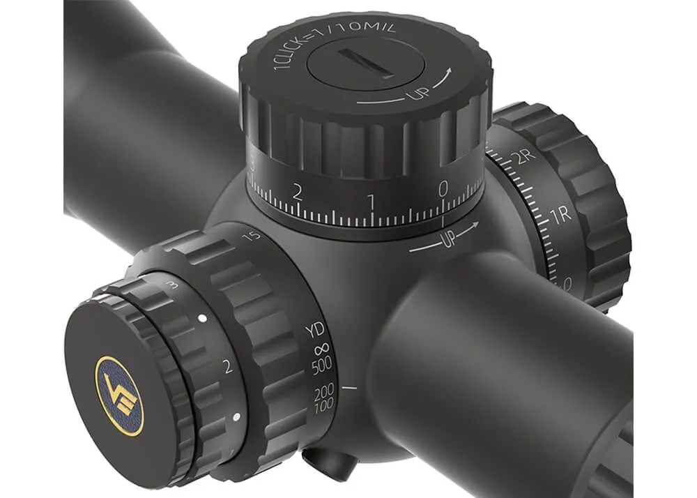 La torreta de elevación de esta mira telescópica Vector Optics tiene un rango de ajuste máximo de 33 MIL, y la torreta de orientación tiene un rango de ajuste máximo de 15 MIL. Cada clic claramente audible de las torretas representa un ajuste de 0,1 MRAD. La carcasa del visor Vector Optics Taurus 4-16×44 HD está fabricada en aluminio 6061-T6 negro mate y tiene un peso de 903 gramos. Esta mira telescópica está purgada con nitrógeno, por lo que las lentes no pueden empañarse por dentro. Gracias a la clasificación de impermeabilidad IP67, este visor se puede sumergir a una profundidad de un metro durante un máximo de 30 minutos, sin que entre agua.