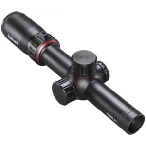 Este visor BUSHNELL NITRO 1-6X24 mm es una óptica variable de baja magnificación en segundo plano focal, las denominadas Low Power Variable Optic (LOVP), que son bastante populares por sus capacidades para operar en la baja y media potencia. Es un visor muy polivalente por ser válido para un uso cinegético, deportivo y táctico. El planteamiento es el de un punto rojo con capacidades ampliadas, por su ratio de magnificación en este caso de seis aumentos.