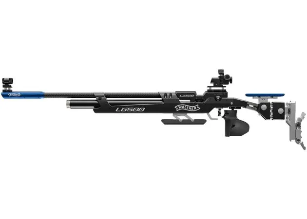 El Walther LG500 Expert se puede ajustar con pesos de equilibrio de 90 gramos en la parte delantera y en la culata para adaptarse a sus preferencias. Tanto la longitud del tirón como la altura de la mejilla se pueden ajustar con un mecanismo de engranaje continuo. La pieza del hombro también es totalmente ajustable, completamente sin escalones, en altura, ángulo y tamaño.